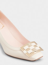Characterized by a Trompette heel, with the iconic curved shape, these pumps feature a woven buckle. Handcrafted in leather, they are the ally of elegant femininity and accompany you throughout the day without sacrificing comfort. Description & details Calfskin leather Metal and leather buckle Leather insole Leather outer sole Covered Trompette heel Heel height 2.8 ins Made in Italy Mod: RVW40040940BSSC019