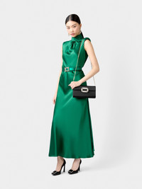 Characterized by the Trompette heel, with the iconic curved shape, these pumps feature a crystal buckle. Handcrafted in satin, they are the perfect ally of an elegant femininity. FEATURES - Silk blend satin - Crystal buckle - Satin lining and insole - Leather outer sole - Covered Trompette heel - heel height 3.9 ins - Made in Italy RVW40144010RS0B999