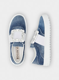 Very Vivier Strass Buckle Sneakers in Denim