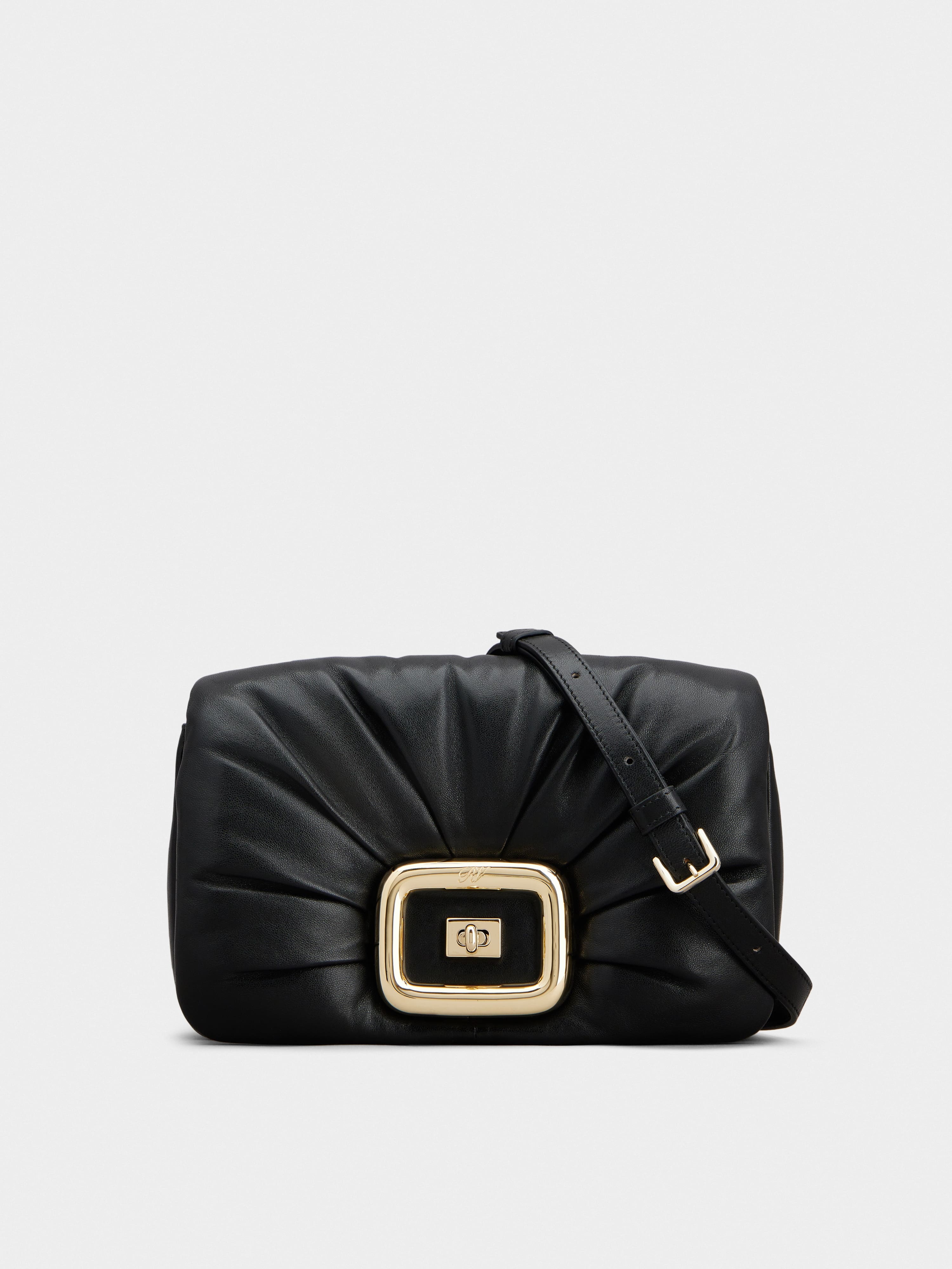 Feminine and sophisticated, the Viv' Choc is the new Maison's iconic bag. Featuring the characteristic rounded metal buckle, this leather version is characterized by a soft drape on the front. Complemented by a pocket on the back, it can be carried by the practical shoulder strap, or with the branded link chain, with an elegant and luxurious twist. Description & details Made in Italy Item crafted in leather Metal buckle Flat pocket on the back Turn-lock closure Leather interior Internal zipped pocket Dimensions: 9.4 x 4.9 x 2.4 ins, adjustable and removable shoulder strap in leather, removable chain strap in metal Maintenance and care cards included Branded dustbag Mod: RBWAOGJ0200YDRB999