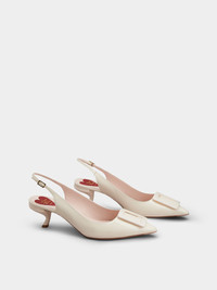 Launched in 1963, the Virgule heel is one of the Maison's most famous creations. Its bold curves combine comfort and elegance. The Virgule Slingback pumps in patent leather are adorned by a lacquered buckle. Complemented by an insole with the emblematic heart, they accompany you throughout the day with their sophisticated style. FEATURES - Patent leather - Tapered toe - Lacquered buckle - Heel strap - Leather insole with heart-shaped insert - Lacquered Virgule heel - Heel height 2.2 ins - Leather outer sole - Made in Italy RVW63831440D1PC019