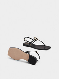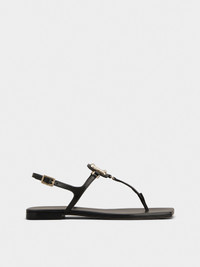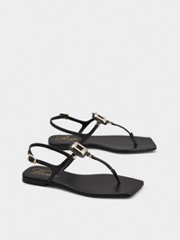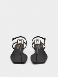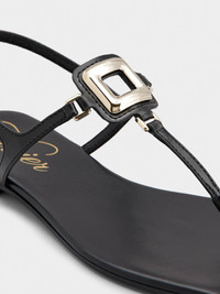The Viv' Choc buckle, with its distinctive rounded shape, adorns these thong sandals in leather with leather outer sole. Characterized by a squared toe, this versatile style comes with a practical heel strap. Description & details Calfskin leather Metal buckle Heel strap Leather insole Leather outer sole Made in Italy Mod: RVW74742370BSSB999