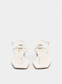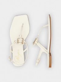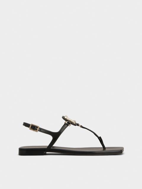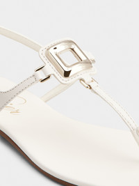 The Viv' Choc buckle, with its distinctive rounded shape, adorns these thong sandals in leather with leather outer sole. Characterized by a squared toe, this versatile style comes with a practical heel strap. Description & details Calfskin leather Metal buckle Heel strap Leather insole Leather outer sole Made in Italy Mod: RVW74742370BSSC019