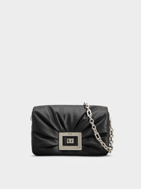 Our iconic metal buckle is an emblem of elegance and femininity. Its sophisticated and timeless allure is expressed in this bag in nappa leather, with a soft draped flap. Featuring a back pocket, it can be worn whether with the practical shoulder strap, or the branded link chain. The final touch to a metropolitan woman's allure. FEATURES - Dimensions: L 9.8 ins x H 4.7 ins x D 2.4 ins - Ovine nappa leather - Adjustable and removable shoulder strap - Removable chain in metal - Metal buckle - Turn-lock closure - Leather lining - Back pocket - Internal zipped pocket - Made in Italy RBWAORJ0200YDRB999
