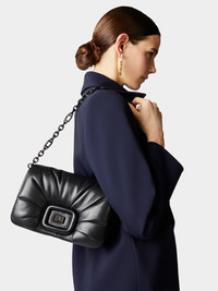 Feminine and sophisticated, the Viv' Choc is the new Maison's iconic bag. Adorned by the characteristic rounded buckle, this leather version is characterized by a soft drape on the front. Complemented by a pocket on the back, it can be carried by the shoulder strap, or with the branded link tone-on-tone chain. Description & details Made in Italy Item crafted in leather Leather covered buckle Flat pocket on the back Turn-lock closure Leather interior Zipped internal pocket Internal pocket Dimensions: 9.4 x 4.9 x 2.4 ins, adjustable and removable shoulder strap in leather, removable chain strap Maintenance and care cards included Branded dustbag Mod: RBWAOGJ0201YDRB999