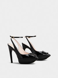 Viv' Choc Lacquered Buckle Slingback Pumps in Patent Leather