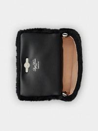 Feminine and sophisticated, the Viv' Choc phone holder is characterized by a soft draped flap and the crystal covered rounded buckle. Crafted in soft faux fur, it features a practical leather shoulder strap. The final touch to the metropolitan woman's allure. Description & details Dimensions: L 7.1 x H 3.7 x D 2.8 ins Faux fur Leather detailing Removable shoulder strap in calfskin leather Crystal buckle Flap and magnetic button closure Fabric interior Internal pocket Maintenance and care cards included Made in Italy Mod: RAWAWHO2302MSRB999