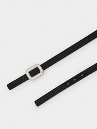 Featuring the homonymous rounded buckle with crystals, the Viv' Choc Strass Buckle Belt is crafted in elegant silk blend satin. A feminine and sophisticated accessory, perfect to add a distinctive Vivier touch to your casual outfits. Description & details Made in Italy Item crafted in silk blend satin Leather detailing Crystal buckle Belt width 0.6 ins Maintenance and care cards included Branded dustbag Mod: RCWC0BF1001RS0B999