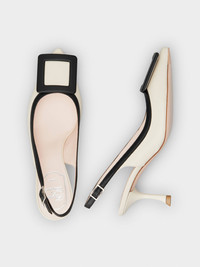 The Viv' In The City Bicolor Slingback Pumps are characterized by a covered buckle matching the piping. Handcrafted in nappa leather with hell strap, this contemporary mood style comes with a lacquered slim heel. Description & details Made in Italy Nappa leather upper Tapered toe Covered buckle Heel strap Leather insole Lacquered heel 2.6 ins Leather outsole Maintenance and care cards included Branded dustbag Mod: RVW61837770NK00H62