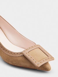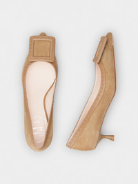 Modern and versatile, the Viv' in the City is characterized by a covered buckle and a stiletto heel. Crafted in suede and smooth leather, with elegant perforations, these pumps add the final touch to the metropolitan women's allure. Description & details Goatskin suede Calfskin leather inserts Covered buckle Leather insole Leather outer sole Stiletto heel Heel height 1.8 ins Made in Italy Mod: RVW54341320JO61U92