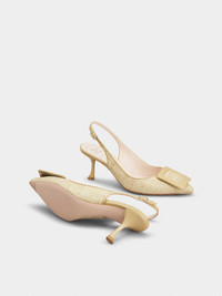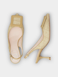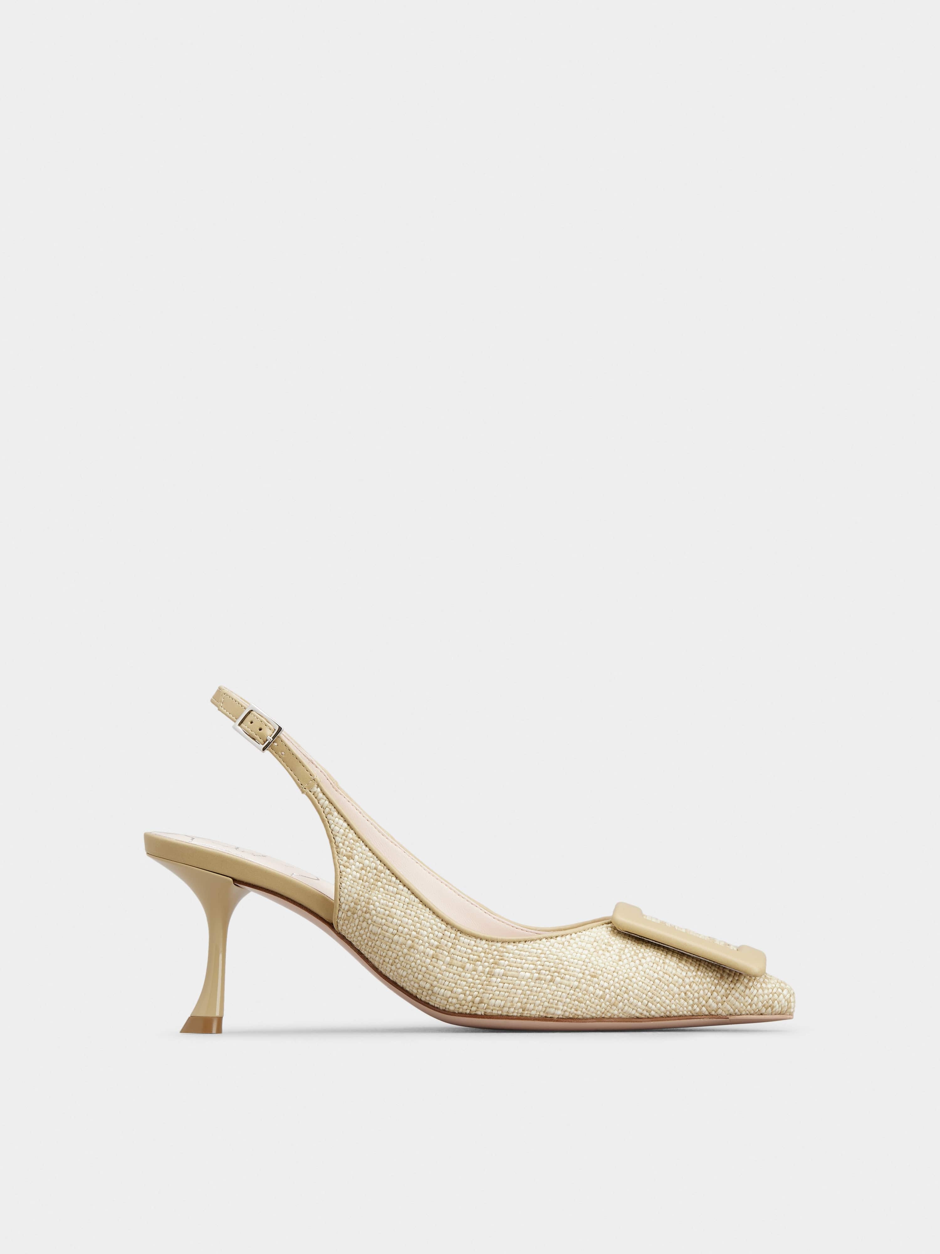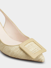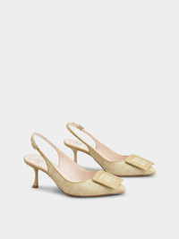 On the Viv' In The City Piping Slingback Pumps, the Maison's iconic buckle turns into a tone-on-tone with a highly contemporary feel. Featuring a heel strap, this style is handcrafted in fabric with a leather piping and an elegant lacquered slim heel. Description & details Made in Italy Fabric upper Leather piping Leather covered buckle Heel strap Leather insole Lacquered heel 2.6 ins Leather outsole Maintenance and care cards included Branded dustbag Mod: RVW61835080RBP4I69