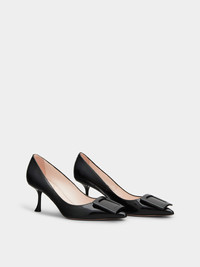 In the Viv' In The City pumps, the iconic buckle of the Maison is covered in a tone-on-tone with a contemporary taste. This model with timeless line is handcrafted in patent leather and features a slim lacquered heel. FEATURES - Patent leather - Patent leather covered buckle - Lacquered heel 2.6 ins - Leather outer sole RVW61830690D1PB999