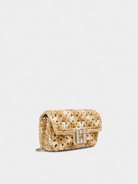 Refined and versatile, this flap clutch bag is crafted in raffia with crochet manufacturing and crystal buckle. Featuring a metal chain strap with metallic leather insert, it is a summer creation with timeless style. Description & details Item crafted in raffia Crystal buckle Magnetic button closure Metallic leather interior Dimensions: 7.3 x 3.9 x 1.8 ins, metal chain strap with leather insert Maintenance and care cards included Branded dustbag Mod: RBWANMC7100THZ1465