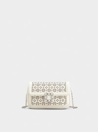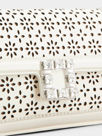 The Jeu de Fille clutch in perforated leather comes with an elegant crystal buckle. Featuring a metal shoulder strap, it complements your evening outfit or is the bold touch to a day outfit. Description & details Dimensions: L 7.3 ins x H 3.9 ins x D 1.8 ins Calfskin leather Metal handle with leather insert Crystal buckle Back pocket Magnetic button closure Fabric lining Internal pocket Made in Italy Mod: RBWANMCB100XMAC019