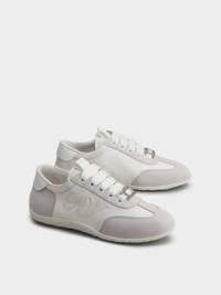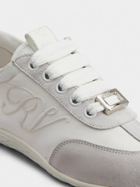 The Viv Low sneakers come with a mini metal buckle on the front and the monogram embroidered on the side. Crafted in suede and satin, they feature a rubber outer sole inspired by the iconic Viv' Run model texture. Soft and lightweight, they accompany you throughout the day with their mix of femininity and comfort. Description & details Suede, fabric Smooth leather detailing Mini metal buckle Monograms embroidered on the side Leather insole Rubber outer sole Made in Italy Mod: RVW79342800TNM89JH