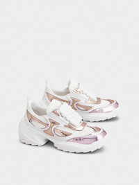 The Viv' on the Run are sneakers with a serrated outer sole, adorned by a removable rubber tag. This comfortable style, crafted in leather, mirror fabric and mesh, adds a Vivier touch to a decontracte look. FEATURES - Leather and mirror effect fabric - Mesh inserts - Side elastic straps - Rubber buckle - Embossed RV logo on the tongue - Rubber outer sole - Made in Italy RVW75640850U9H1V19