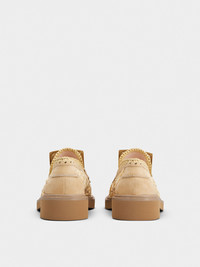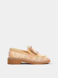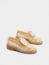 The Maison interprets the urban style with the Viv' Rangers collection. Crafted in raffia and suede, with a refined weaving on the piping and rubber outer sole, these loafers are adorned by the iconic metal buckle. A feminine and sophisticated style. Description & details Net fabric and raffia Suede inserts Metal buckle Leather insole Leather welt Rubber outer sole Made in Italy Mod: RVW54842490UEY1V43