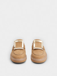 The Maison interprets the urban style with the Viv' Rangers collection. Crafted in suede, these mules with loafer toe and rubber outer sole are adorned by the iconic metal buckle. A feminine and sophisticated style. Description & details Goatskin suede Metal buckle Leather insole Leather welt Rubber outer sole Made in Italy Mod: RVW54840970HR0S812