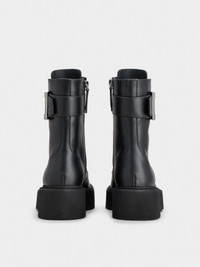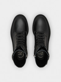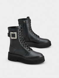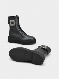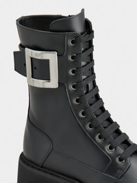The Maison interprets the urban style with the Viv' Rangers collection. Crafted in smooth leather, these combat boots with high outer sole are adorned with the iconic metal buckle. Sophisticated and comfortable at once. Description & details Calfskin leather Metal buckle Leather insole Rubber platform outer sole Made in Italy Mod: RVW74040460SOAB999