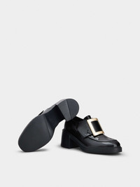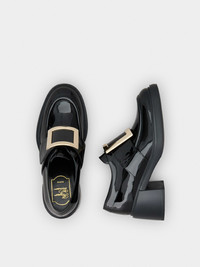 The Viv' Rangers Metal Buckle Loafers are the perfect pair to wear in between seasons. Finely handcrafted in patent leather, these loafers add a distinct Vivier touch to the most casual outfits with its oversized signature buckle. Description & details Made in Italy Patent leather upper Metal buckle Structured rubber heel 2.4 ins Rubber outsole Maintenance and care cards included Branded dustbag Mod: RVW59829340D1PB999