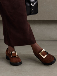 Roger Vivier's 'Viv Rangers' loafers are decorated with the brand's iconic buckle in shiny gold-tone metal. They've been made in Italy from smooth suede and rest on rubber soles. Details & Care - Heel measures approximately 25mm/ 1 inch - Brown suede - Slip on