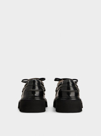 The Viv' Rangers Truck collection reinvents urban standards with a bold yet refined twist. With their thick lugged outer sole and iconic buckle, these boat shoes in leather add a strong touch to any outfit. Description & details Calfskin leather Metal buckle Woven tie Leather welt Leather insole Rubber outer sole Made in Italy Mod: RVW78442780TWRB999