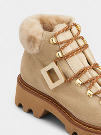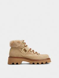 The Viv' Rangers Truck collection reinvents urban standards with a bold yet refined twist. With their thick lugged outer sole and iconic buckle, these booties in suede add a strong touch to any outfit. Description & details Calfskin suede Sheepskin inserts Smooth leather detailing Metal side buckle Leather welt Sheepskin lining and insole Rubber outer sole Made in Italy Mod: RVW78443460USL5QQH