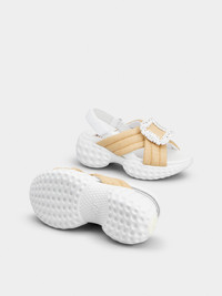 The Viv' Run Light cratered outsole comes here combined with sandals in technical fabric with heel strap in leather. Characterized by soft crossed straps, the Viv' Run Light Strass Buckle Sandals are enhanced by a crystal buckle. A new summer must-have for the stylish urban women. Description & details Fabric upper Leather strap with velcro Crystal buckle Leather insole Rubber outsole 3 ins Maintenance and care cards included Branded dustbag Mod: RVW6673356008Z1V00