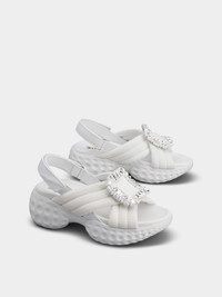 When fashion meets sports, the Viv' Run Sneaker is one of the Maison's best-loved styles. Reimagined in a sandal form, this pair is hand crafted in technical fabric and features a signature crystal buckle and a hidden Choc heel on a new cratered sole. Description & details Made in Italy Technical fabric upper Leather strap with velcro Crystal buckle Leather insole Rubber outsole max 2.9 ins Maintenance and care cards included Branded dustbag Mod: RVW66733560DX2B001