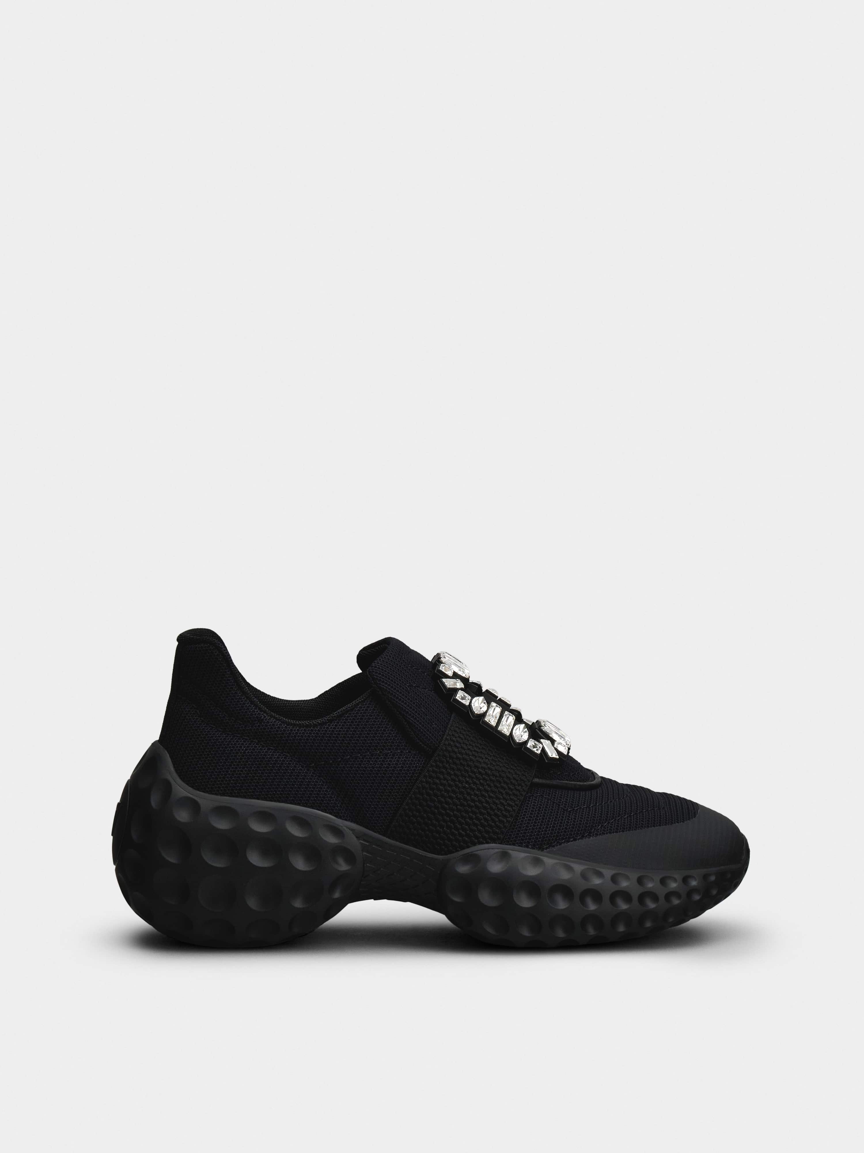 When fashion meets sports, the Viv' Run Sneaker is one of the Maison's best-loved styles. Finely hand crafted in a mix of high-performance materials, the Viv' Run Light Strass Buckle Sneaker features the signature crystal buckle and a hidden Choc heel on a new cratered sole - an essential for stylish urban women. Description & details Made in Italy Embossed technical fabric upper Crystal buckle Frontal elastic band Rubber outsole max 3 ins Maintenance and care cards included Branded dustbag Mod: RVW63731340QPSB999