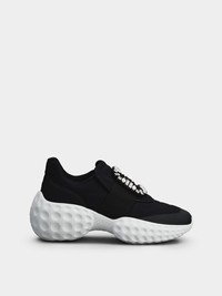 When fashion meets sports, the Viv' Run Sneaker is one of the Maison's best-loved styles. Finely hand crafted in a mix of high-performance materials, the Viv' Run Light Strass Buckle Sneaker features the signature crystal buckle and a hidden Choc heel on a new cratered sole - an essential for stylish urban women. Description & details Made in Italy Embossed technical fabric upper Crystal buckle Frontal elastic band Rubber outsole max 3 ins Maintenance and care cards included Branded dustbag Mod: RVW63731340QPS9999