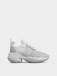 The iconic Viv' Run style declines its sporty taste in an elegant and feminine formula. Characterized by a rubber outer sole inspired by the emblematic Choc heel, these slip-on sneakers are crafted in technical fabric, with a suede toe. Adorned with a shiny crystal buckle, they add to your dynamic look the distinctive Vivier touch. Description & details Scuba effect fabric and mesh Suede detailing Crystal buckle Rubber outer sole Height 3 ins approx Made in Italy Mod: RVW50624180T5V1U52