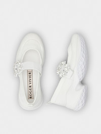 The Viv' Run style is the result of the meeting of fashion and sport. This declination in ballerina version is crafted in scuba effect fabric, with leather strap and crystal buckle. A new style ally for the contemporary Vivier woman. Description & details Made in Italy Scuba effect fabric upper Leather strap on the front Crystal buckle Leather outsole 3 ins Maintenance and care cards included Branded dustbag Mod: RVW50637520T8BB001