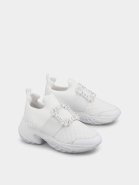 Roger Vivier presents a running shoe that is extremely feminine, inspired by some of his most symoblic creations: the iconic buckle of the Belle Vivier and the Choc heel, instantly recognized by the curved silhouette it produces. As an elegant accessory of the dynamic woman, the Viv' Run, adorned with a shiny crystal buckle, are perfect for running between appointments, without compromising on style. Description & details Made in Italy High tech and scuba effect fabric upper Leather detailing Front Strass Buckle with crystals Front elasticated panel Rubber outsole max 3 ins Maintenance and care cards included Branded dustbag Mod: RVW50624180KOTB001
