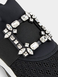 Roger Vivier presents a running shoe that is extremely feminine, inspired by some of his most symoblic creations: the iconic buckle of the Belle Vivier and the Choc heel, instantly recognized by the curved silhouette it produces. As an elegant accessory of the dynamic woman, the Viv' Run, adorned with a shiny crystal buckle, are perfect for running between appointments, without compromising on style. Description & details Made in Italy High tech and scuba effect fabric upper Leather detailing Front Strass Buckle with crystals Front elasticated panel Rubber outsole max 3 ins Maintenance and care cards included Branded dustbag Mod: RVW50624180KOTB999