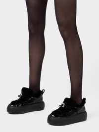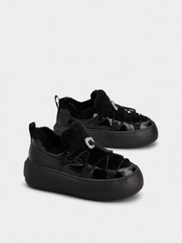 The new slip-on sneakers, inspired by the 60s Space Age, feature lightness and volume. Designed to feel like walking on cushions, they come with soft, rounded details. The 2 ins high outer sole is crafted in lightweight, flexible EVA, like yoga mats. The upper is crafted in patent leather and shearling, with a crystal buckle as a drawstring stopper. A model that adds a contemporary Vivier touch to a casual look. FEATURES - Patent leather - Shearling inserts and lining - Drawstring with crystal buckle - Grosgrain detailing - Rubber outer sole - Outer sole height 2 ins - Made in Italy RVW73943390US7B999