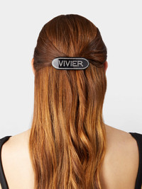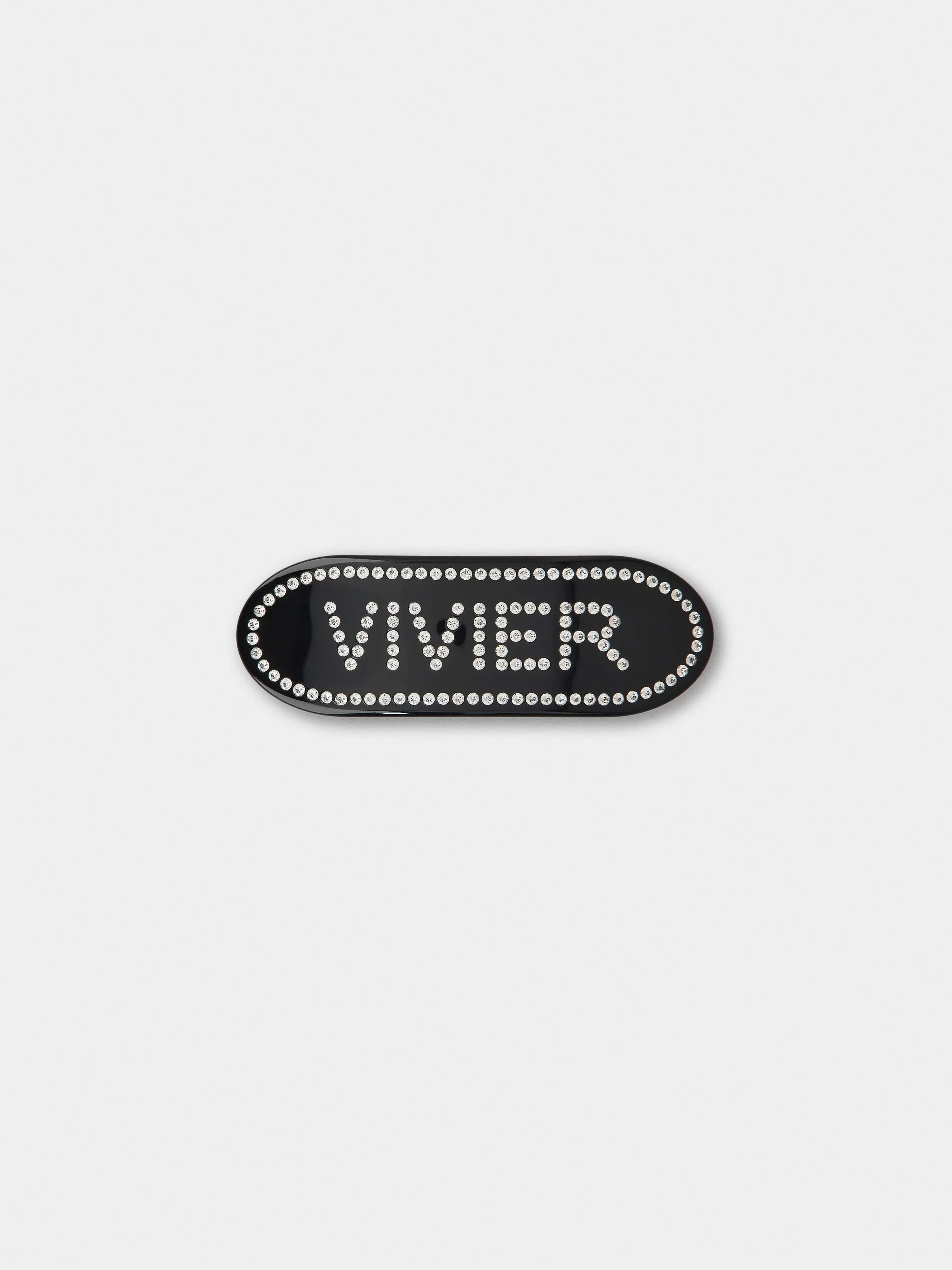 Hair clip with rhnestone Vivier logo. Versatile and feminine, to instantly add a glam touch to your hairstyle. Description & details Made in France Item crafted in cellulose acetate Rhinestone logo and piping Metal clip Dimensions: 3.1 x 1.1 ins Maintenance and care cards included Mod: REWAC160100AGKB999