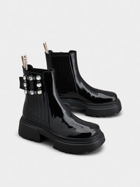 Wallaviv Strass Buckle Chelsea Ankle Boots in Patent Leather
