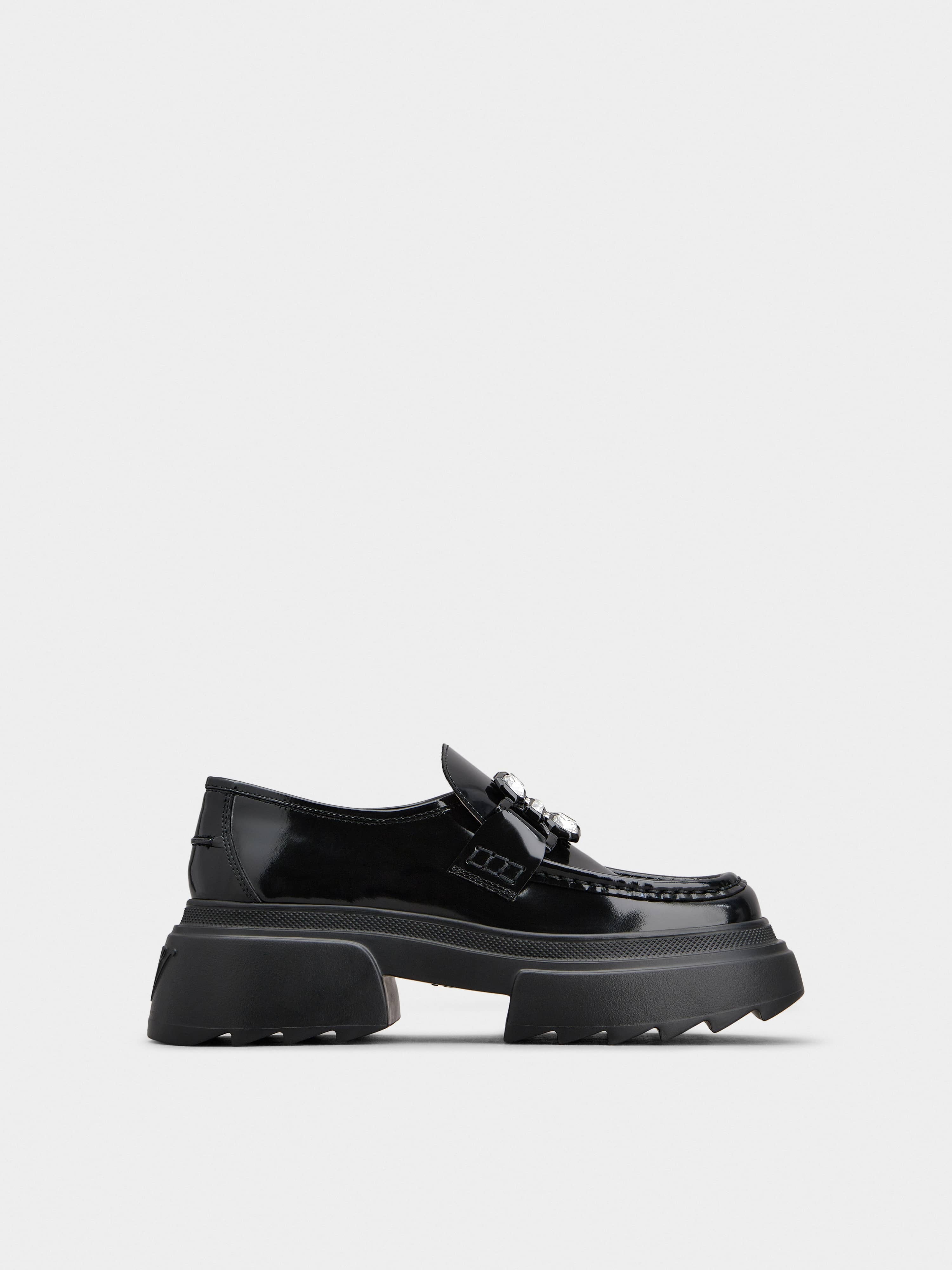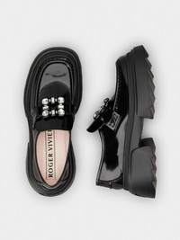In its many feminine declinations, the Vivier style always expresses a strong personality. The Wallaviv collection also combines elements of precious elegance with a chunky outsole with a decidedly bold personality. Crafted in leather, the Wallaviv Strass Buckle Loafers feature a crystal buckle and a serrated rubber outsole. Urban attitude with an unmistakable Vivier touch. Description & details Leather upper Squared toe Crystal buckle Leather insole Leather outsole Maintenance and care cards included Branded dustbag Mod: RVW71036400MRKB999