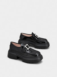 Wallaviv Strass Buckle Loafers in Leather