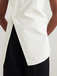 ROHE's collections are inspired by art and architecture, so its pieces always have a sculptural feel. This top is tailored from cotton-poplin with a sharp, asymmetric neckline and has buttons along the side for a waist-defining fit. Highlight the split hem with high-rise pants. Size & Fit - Fits true to size, take your normal size - Designed for a slim fit - Mid-weight, non-stretchy fabric - Model is 177cm/ 5'10" and is wearing a FR 36 Model measurements: - Bust: 77cm/ 30.5" - Waist: 62cm/ 24.5" - Hip: 88cm/ 34.5" Details & Care - White cotton-poplin - Button fastenings through front - 100% cotton