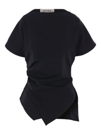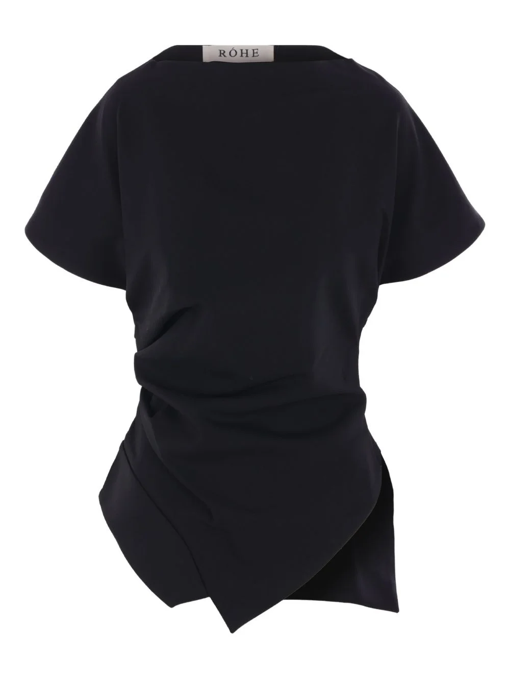 asymmetrical draped top Highlights - Black - Boat neckline - Invisible zip closure - Draped lapel - Asymmetrical hem - Gathered detail Imported Composition Viscose 97%, Elastane 3% Washing instructions Dry Clean Only