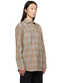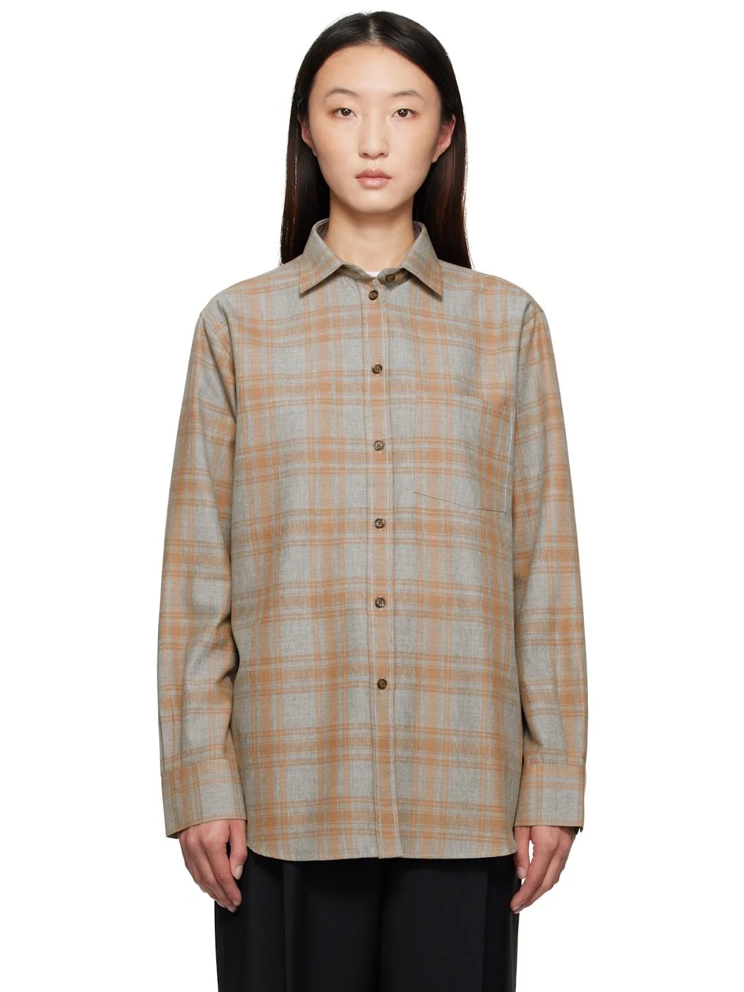 Viscose- and virgin wool-blend twill shirt. · Check pattern throughout · Spread collar · Button closure · Patch pocket at chest · Shirttail hem · Buttoned barrel cuffs Supplier color: Powder check 54% viscose, 46% virgin wool. Made in Portugal 252144F109004