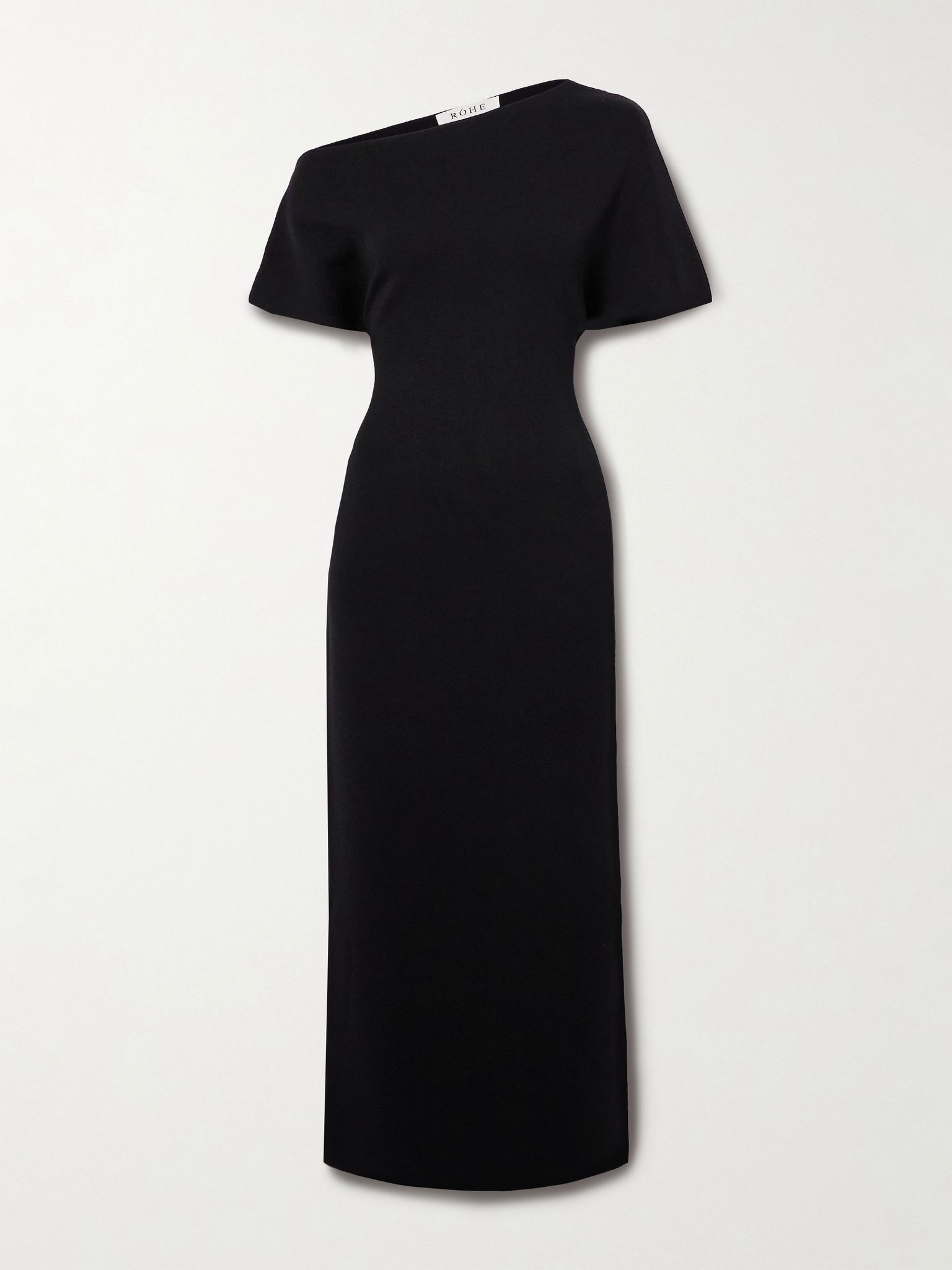 ROHE's dress has an asymmetric neckline that dips off one shoulder. It's made from jersey for a close fit and hits just above the ankles. Wear yours with statement jewelry. Size & Fit - Fits true to size, take your normal size - Designed for a slim fit - Mid-weight, slightly stretchy fabric - Model is 177cm/ 5'10" and is wearing a FR 34 Model measurements: - Bust: 80cm/ 31.5" - Waist: 60cm/ 23.5" - Hip: 89cm/ 35" Details & Care - Black jersey - Slips on - 70% viscose, 30% nylon - Dry clean