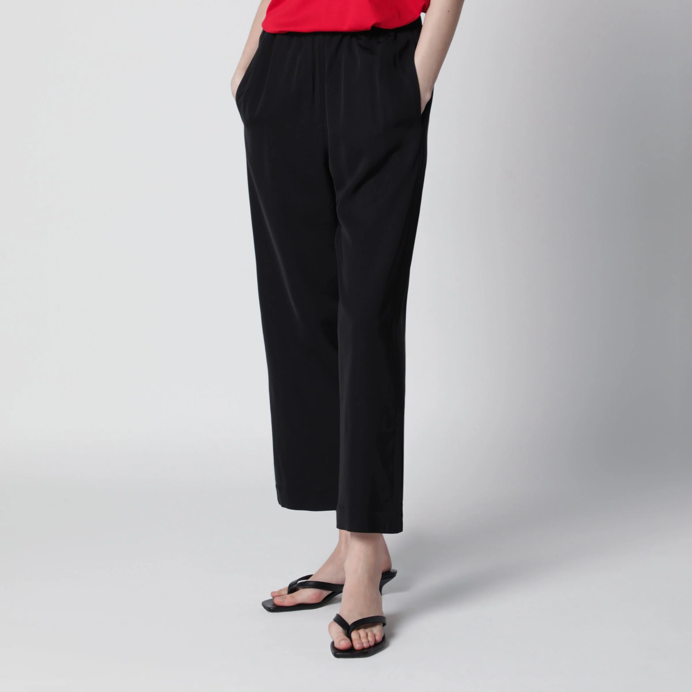 Trousers by Rohe in technical wool-blend jersey• Color: Black• Cropped wide leg• Elasticated waistband• Ankle length• Side pockets