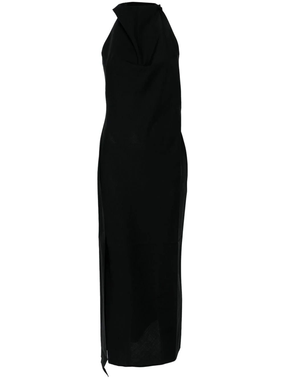 halterneck virgin wool maxi dress Highlights - Black - Virgin wool - Halterneck - Button fastening - Low back - Concealed side zip fastening - Side slit - Straight hem - Long length Imported Composition Virgin Wool 100% SIZE & FIT Model measurements Height 5 ft 9 in(1.75 m) Bust/Chest 34.64 in(88 cm) Hips 36.61 in(93 cm) Waist 26.37 in(67 cm) FittingInformation Designed for a slim fit that sits just away from the body offering a close yet comfortable fit Made from a midweight non-stretch fabric This piece fits true to size – take your usual size