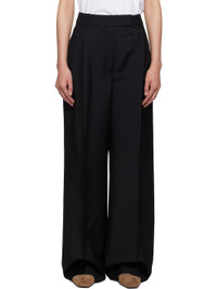 Plain-woven virgin wool- and mohair-blend trousers. · Wide-leg · Mid-rise · Belt loops · Four-pocket styling · Zip fly · Pleats at waist · Creased legs Supplier color: Black 73% virgin wool, 27% wool mohair. Made in Portugal 252144F087014