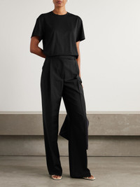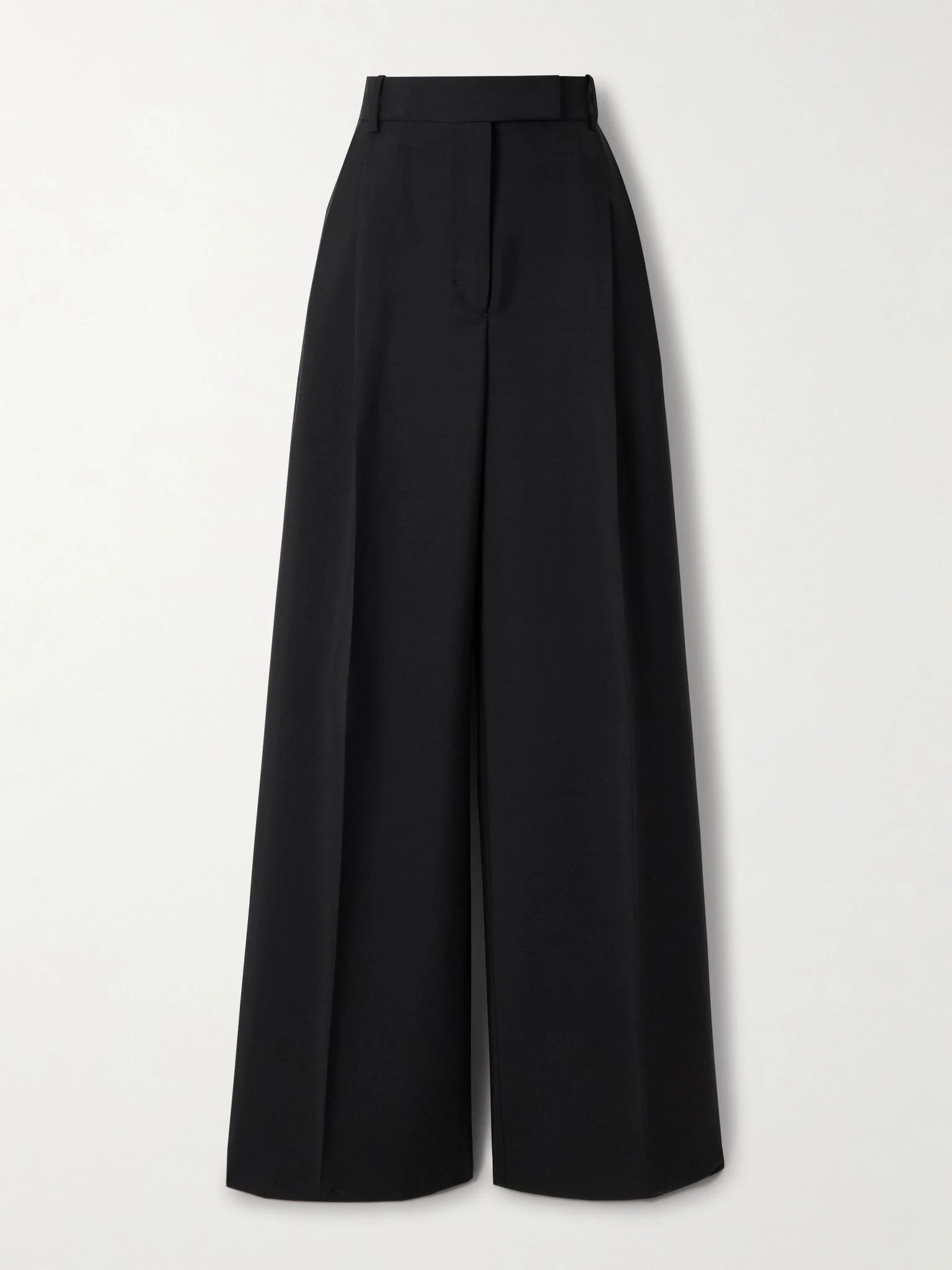 Based in the heart of Amsterdam, ROHE designs collections that reflect the architecture surrounding its studio. These pants are immaculately tailored from grain de poudre wool and mohair-blend with wide legs and double pleats. They're a timeless wardrobe classic that'll work with shirts, blouses and tanks alike. Size & Fit - Fits true to size, however those who are between sizes should take the smaller size - High-rise, cut for a wide-leg fit - Mid-weight, non-stretchy fabric - Model is 177cm/ 5'10" and is wearing a FR 34 Model measurements: - Bust: 86cm/ 34" - Waist: 65cm/ 25.5" - Hip: 90cm/ 35.5" Details & Care - Black grain de poudre wool and mohair-blend - Concealed hook, button and zip fastening at front - 73% wool, 27% mohair - Dry clean