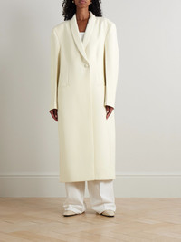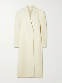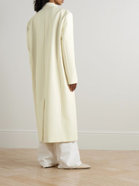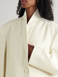 ROHE's 'Signature' coat embodies sophisticated minimalism, making it one you'll feel confident returning to for seasons to come. It's woven with a generous amount of wool and has an oversized fit with a darted waist and shawl lapels. Size & Fit - Fits true to size, take your normal size - Intended for an oversized fit, cut to be worn very loose - Mid-weight, non-stretchy fabric - Model is 177cm/ 5'10" and is wearing a FR 36 Model measurements: - Bust: 77cm/ 30.5" - Waist: 62cm/ 24.5" - Hip: 88cm/ 34.5" Details & Care - Off-white polyester, wool and Lyocell-blend - Button fastening at front - 53% polyester, 43% virgin wool, 4% Lyocell