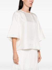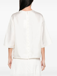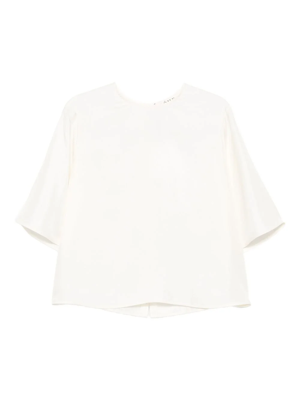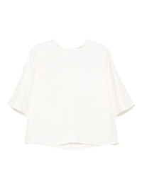 short-sleeve silk top Highlights - Cream - Short sleeves - Round neck - Silk - Back button fastening Imported Composition Silk 100% SIZE & FIT Model measurements Height 5 ft 10 in(1.78 m) Bust/Chest 33.46 in(85 cm) Hips 36.22 in(92 cm) Waist 23.22 in(59 cm) Washing instructions Dry Clean Only